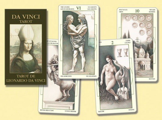 這副牌是唯一一副根據 Da Vinci 的塔羅,有很多有關 Da Vinci 的圖案,由於色調較淺,所以看上去會有種歷經風傷、古典的感覺。有很多張牌的圖案都是基於一些偉大的、深奧的藝術品。