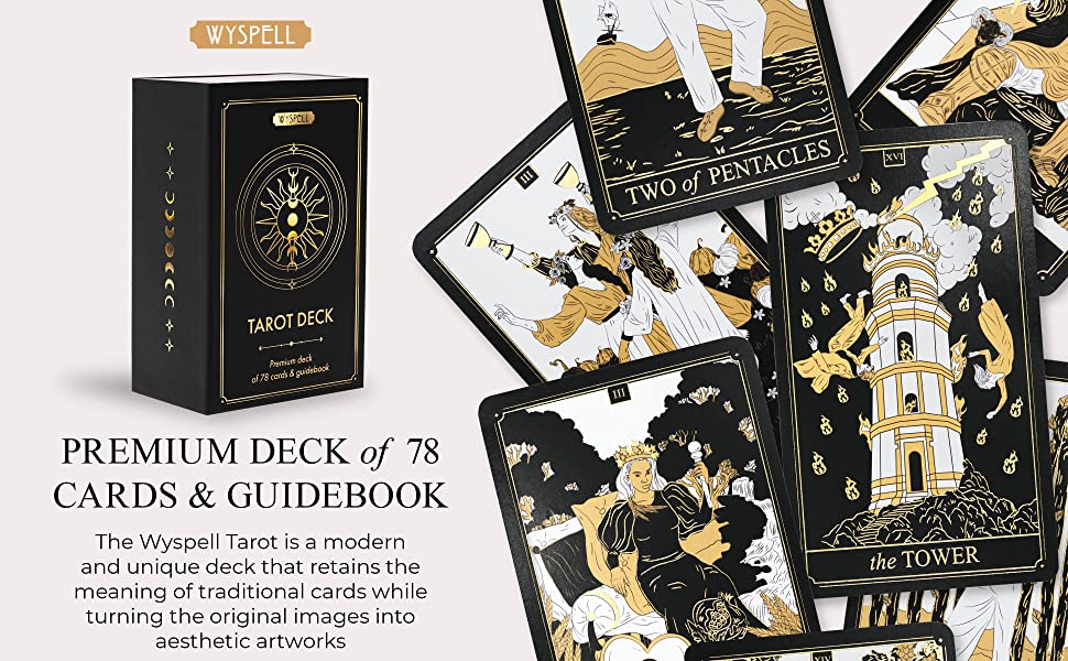 Classic tarot cards for beginners with guidebook of 200 pages includes all cards tarot meaning and a magnetic tarot deck box. The Wyspell tarot deck is a unique gift for any beginner tarot enthusiast!