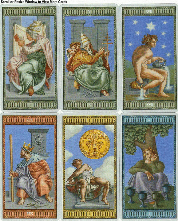 Revered as a divine genius even in his own lifetime, Michelangelo is unquestionably one of thegreatest artists of all time. Honoring the master of the Italian Renaissance, the Michelangelo Tarot Deck cleverly enshrines his signature work into a tarot paradigm. David, the Madonna, and other familiar faces from Michelangelo’s iconic masterpieces come to life in unique andcompelling ways. This inspiring tarot, lightly tied to Rider-Waite-Smith structure, can be usedto deepen your faith, solve spiritual conflicts, make moral decisions, and embark on your own personal renaissance.