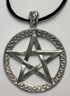 This large, heavy-weight, intertwined pentagram is double-sided, with decorative markings on both sides. Has cord