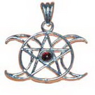 Triple Moon Pentagram pendant, brass w/silver electroplating