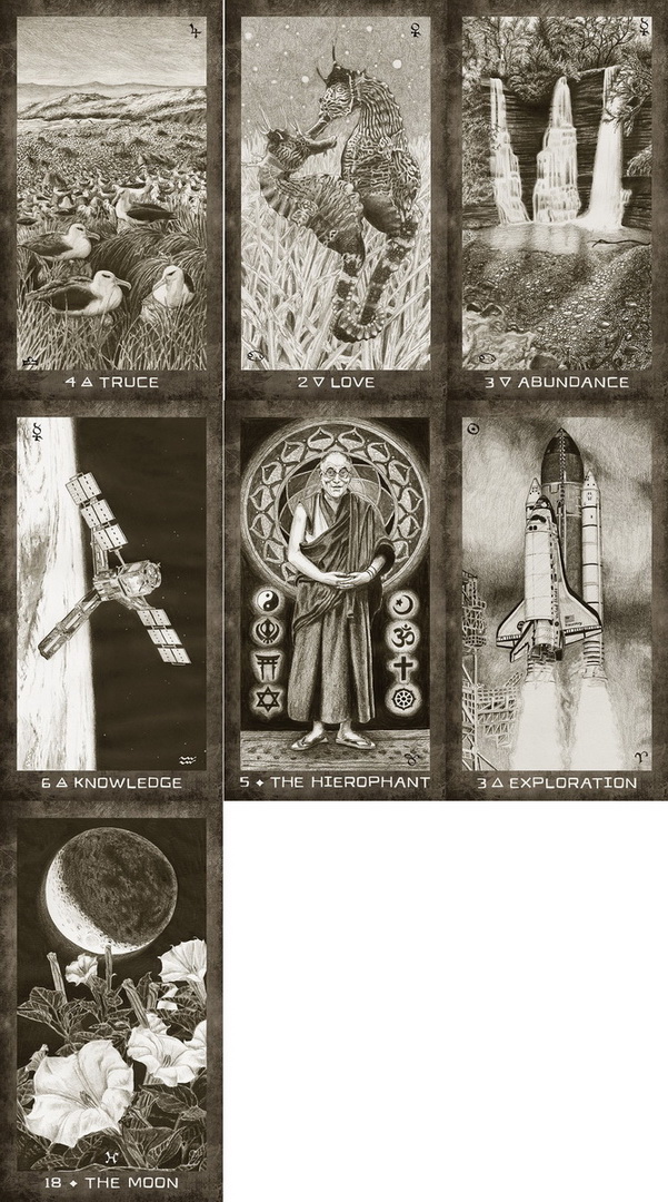 作者 Pieper 的塔羅牌明確地連接到四個元素(火,水,空氣和地球),宮廷牌代表四種不同的世界文化。
