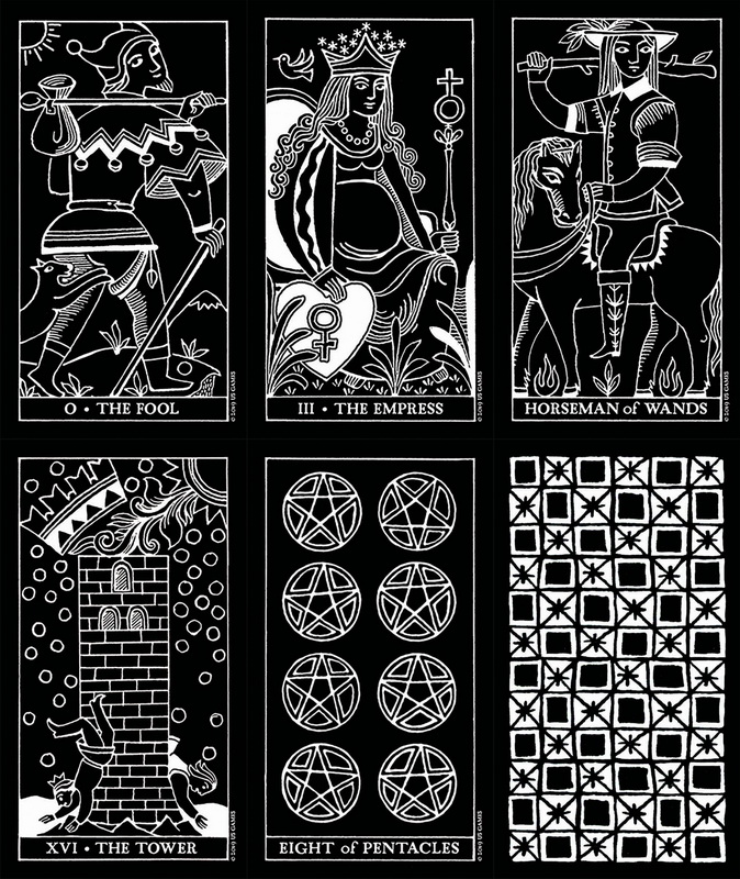 The pocket-sized deck includes 78 black and white cards and 64-page booklet in a handy tin. Booklet includes instructions for two tarot spreads.