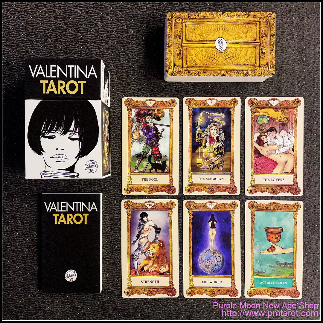 在這個優雅而充滿活力的瓦倫蒂娜塔羅牌中,由作者筆下著名的書籍和漫畫人物瓦倫蒂娜(Valentina),穿越塔羅牌進入這個神秘的國度,將展示精美藝術與生動的偉特塔羅牌圖象,再現一種有趣又戲謔的幽默,透過人物的故事與表情,這些可愛的插圖描繪著如夢如幻的場景和迷人的角色,具有張力的表現方式,簡單化了牌卡中繁複的元素,直接將意涵的樣貌做了說明,也許看不到物質的形體,但卻穿透了精神的面向。