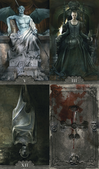 Vampires evoke a world of primal essences, where the boundary between human and monster is blurred beyond recognition. This deck features intense, moody art, setting the stage for the deep work of soul exploration with a backdrop of the struggle between good and evil. These cards remind us that within every human there are monsters, but inside every monster there is humanity.