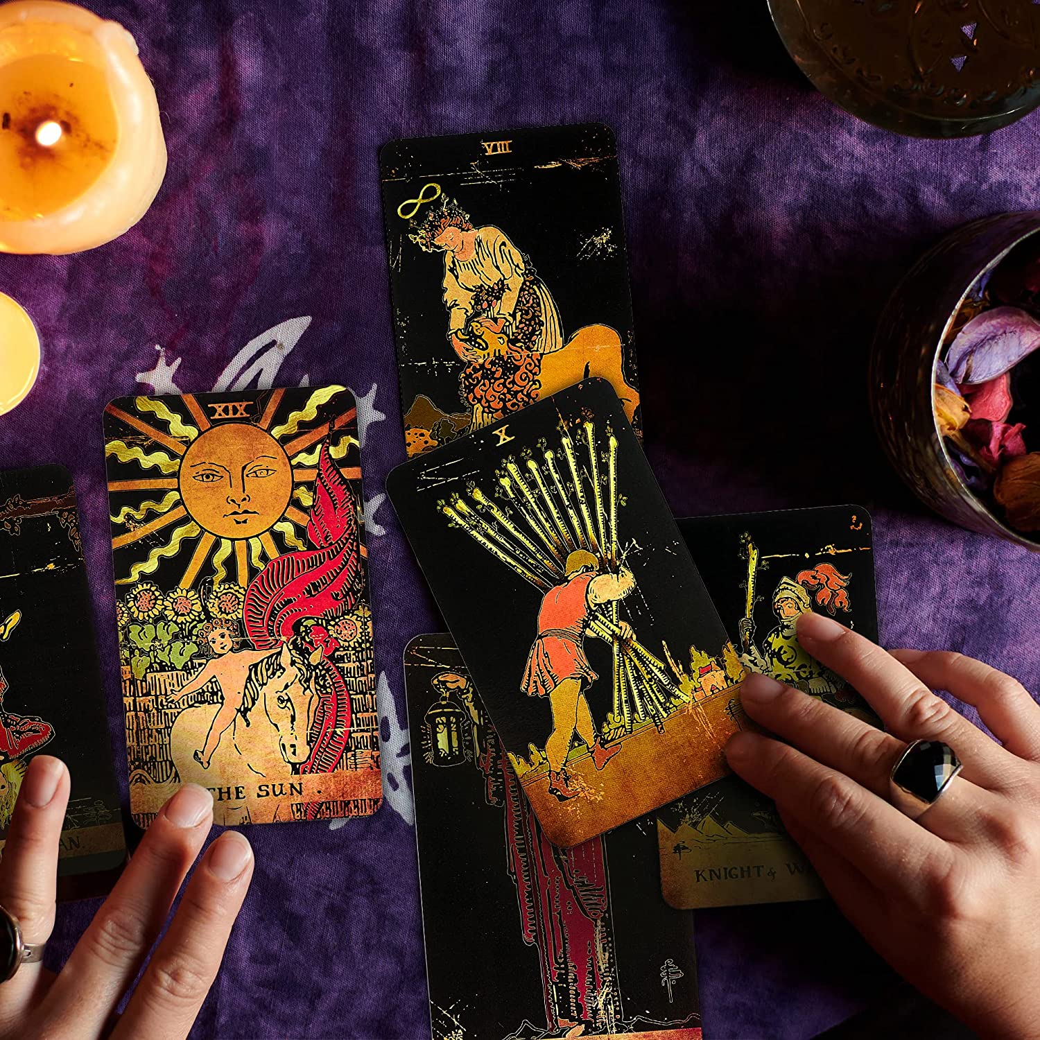 With our complete deck of tarot cards, you will receive 78 cards in traditional tarot format, with numbered cards and suits for the major and minor arcana. This is the practice of using tarot deck cards to learn the past, present, or future by formulating a question that you will find the answer to in a 35-page guidebook.