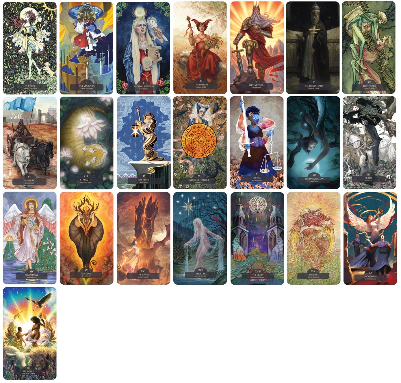 - The deck comes with a full color, 200 page, illustrated guide book, which will have a 2-color foil stamped cover.