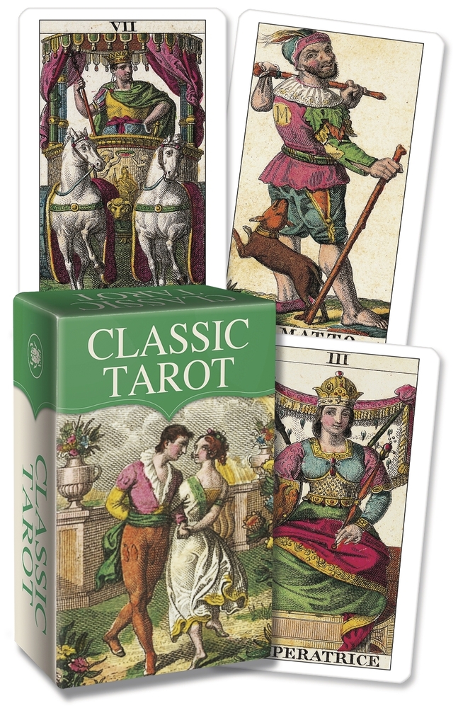 Printed on premium black-core cardstock, this mini edition of Lo Scarabeo's Classic Tarot is perfect for on-the-go readings. The work of Carlo Della Rocca, one of the most important engravers of the nineteenth century, is reproduced here, preserving the natural charm of his extremely refined craft. This beautiful deck is small enough to fit in a pocket or purse so you can carry it everywhere.