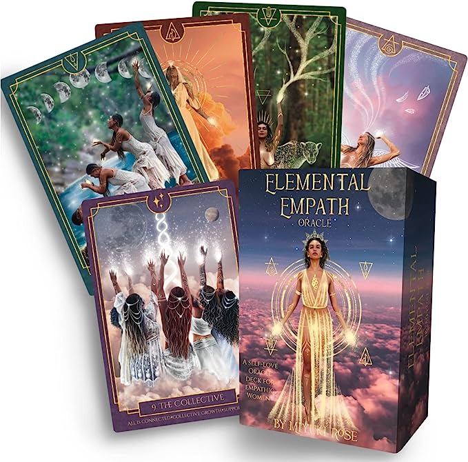 The Elemental Empath tarot cards deck is split into the 5 Elements, Earth, Water, Fire, Air and Cosmos, connecting the body, emotions, personal power, mind and divine into One. An excellent way of truly listening to yourself and learning to avoid bypassing your emotions, giving your life clarity and direction