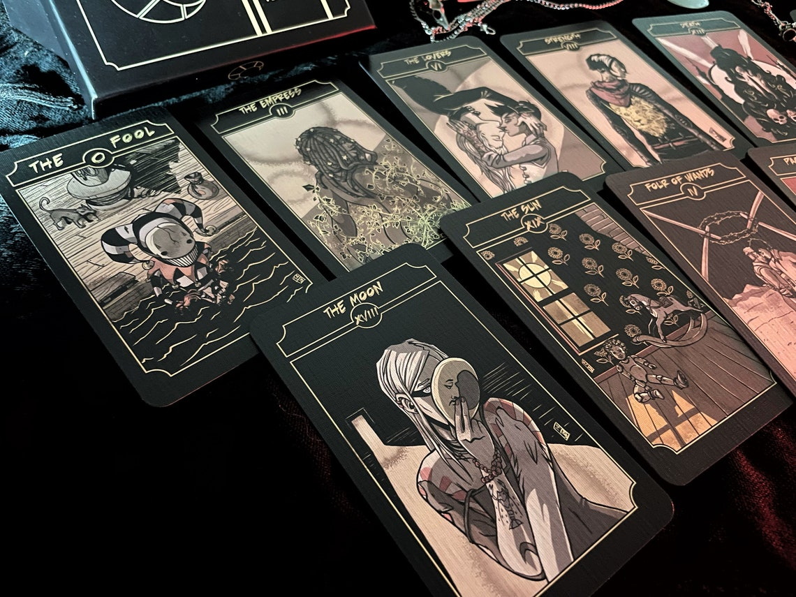 The Sinking Wasteland Tarot is set in a post-apocalyptic Gothic western wasteland using the archetypes and themes of a RWS Tarot deck to bring its setting to life. Its world is one with toxic water rising slowly to swallow the land. Lands that are mostly desert and wastes. Wanderers that inhabit the world and the unknown creatures and magics that were unearthed when the world broke.
