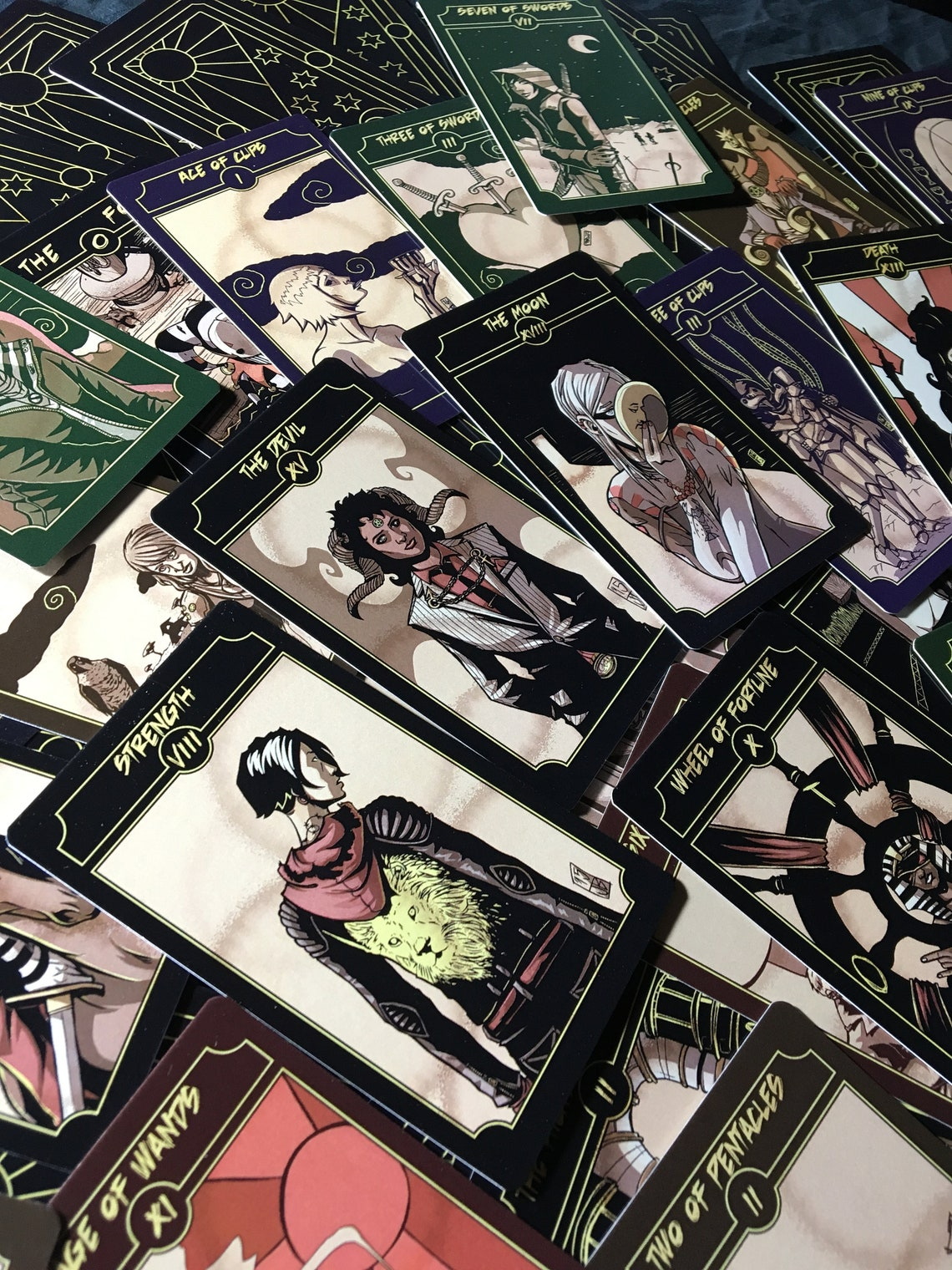 In creating this deck, I found that I was able to communicate visually a great deal of the atmosphere that I was hoping for, and I've been very pleased with the results and its reception. Some of the characters that I've drawn are based on people I know, others are pulled out of thin air. I wanted something with more diversity than I encountered in more traditional decks, and so in this interpretation of the tarot you will find different body types, ethnicities, ages, sexualities, and gender expressions.