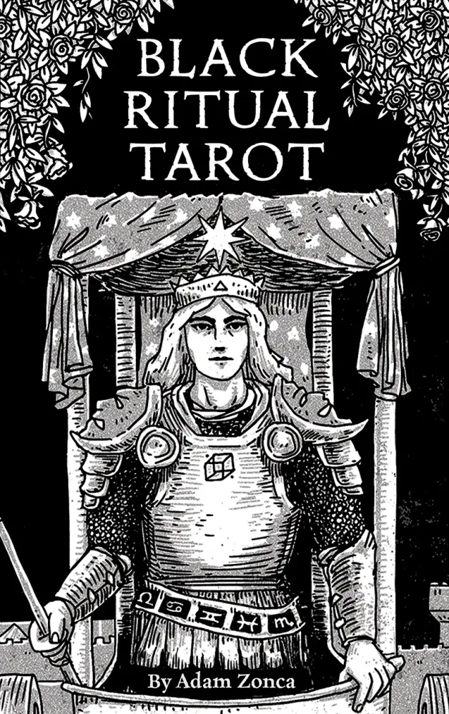 Using only black ink, the Black Ritual Tarot invites us to explore the depths of the psyche. Adam Zonca’s highly detailed illustrations offer a monochromatic perspective on the enduring Rider-Waite archetypes and symbols. This black and white deck was created to offer focused readings that cast light on the dark and light aspects within our journey and ourselves. Includes 78 cards and 56-page booklet with card meanings and keywords.