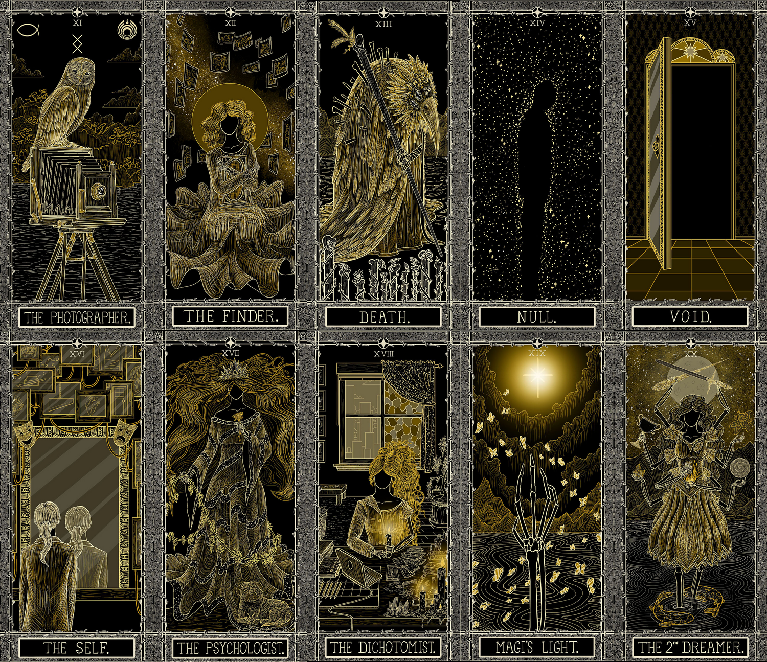 It was created in collaboration with the backers from the Kinner Tarot deck, from which this deck was made possible.