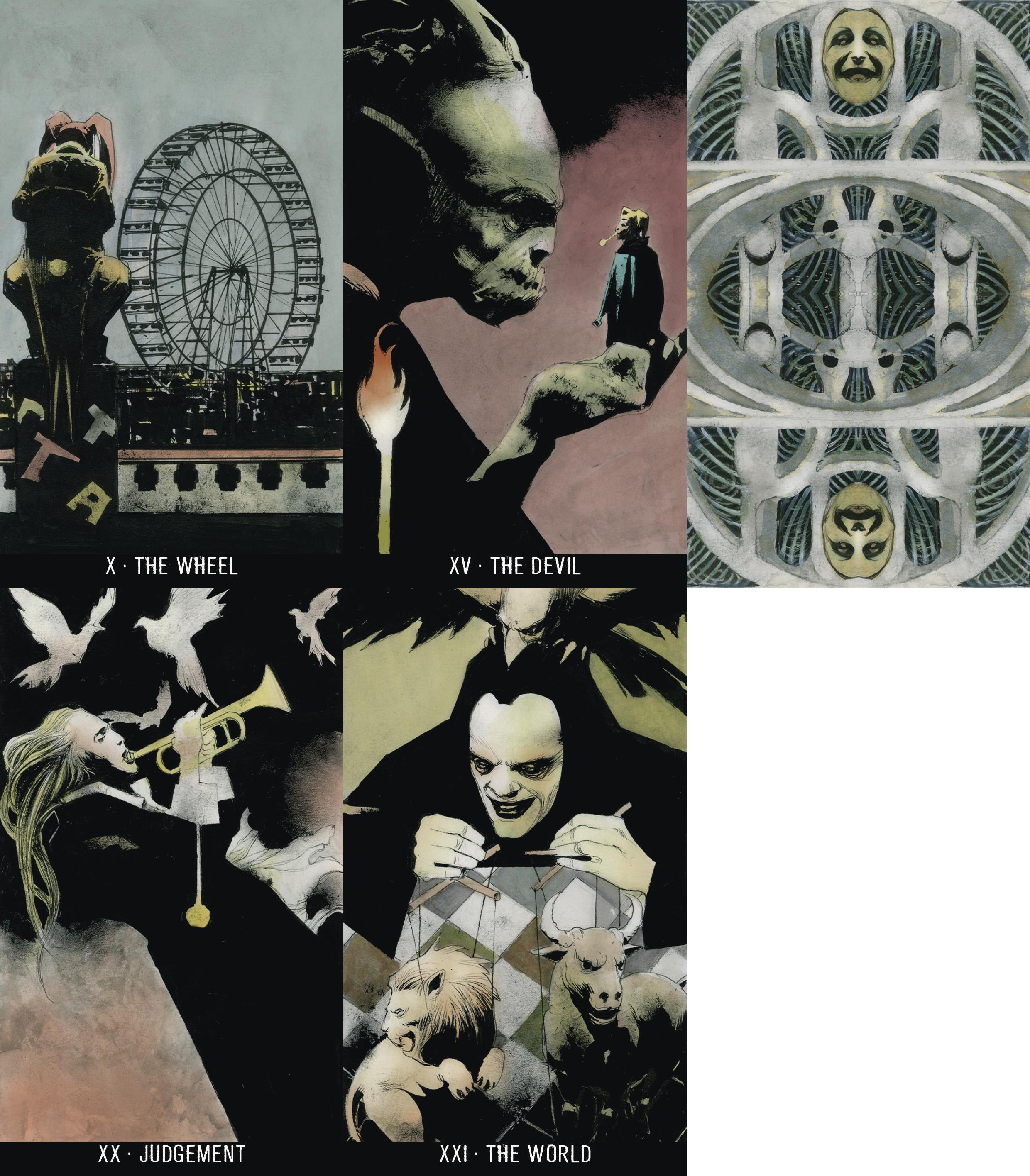 Many things can be hidden behind a simple grin: joy, amusement, malice—even madness. No other human expression bears so great a variety, and no other character such power and charisma as the joker. This legendary archetype emerges from the black shadow of Corrado Roi’s deep inks to shake up all certainties: each Arcanum in this deck shows one of the joker’s 78 faces to reveal a side of his rich and multifaceted persona.