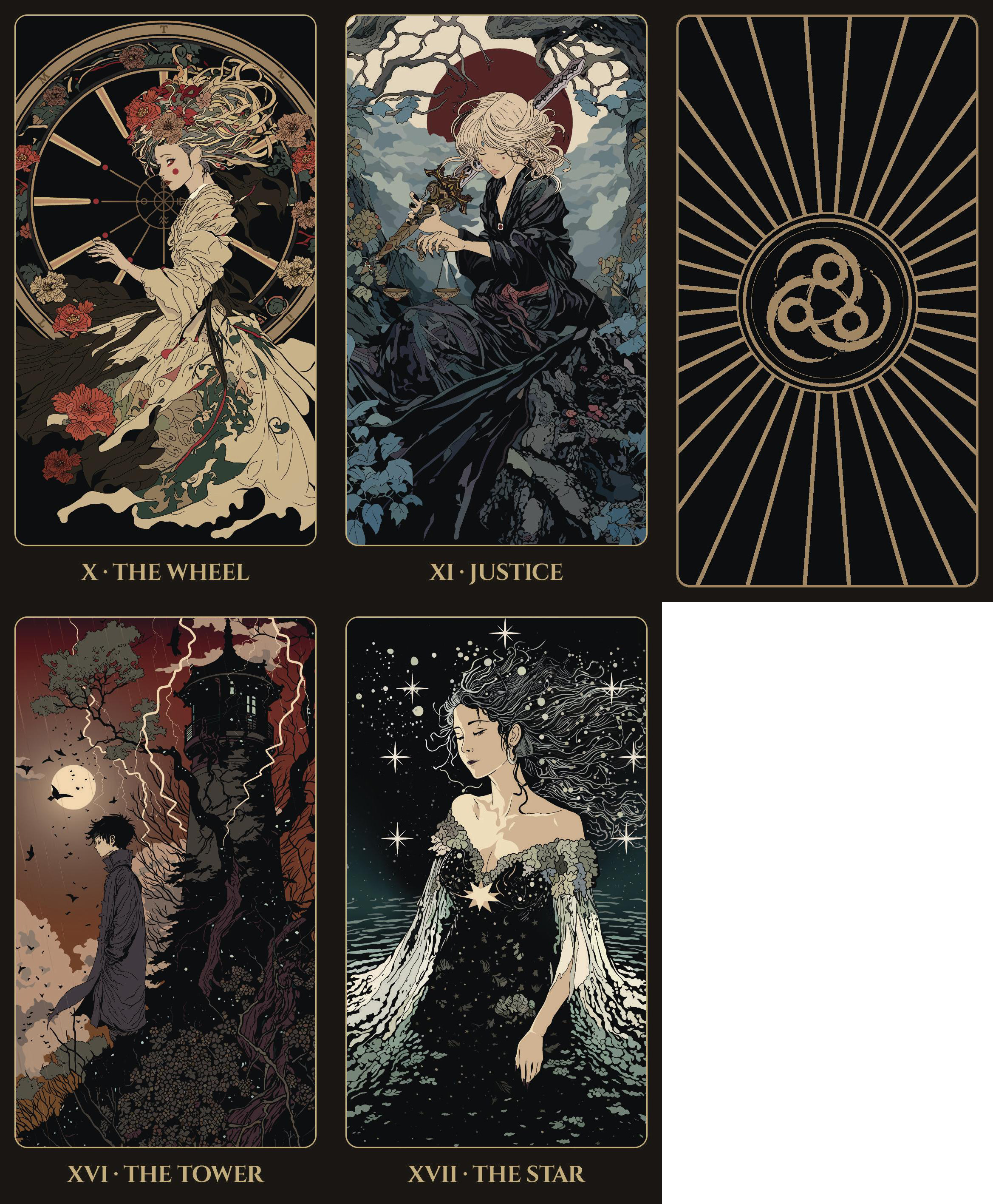The Japanese term ukiyo—the “floating world”—came to prominence in the 17th century to describe the pleasure-seeking culture of urban lifestyle in cities like Edo, Kyoto, and Osaka. From it stemmed an art movement that dealt with notions of transience, impermanence, and the ephemeral. Ukiyo Tarot recalls these fascinating concepts and combines them with a modern anime-like style to bring the subtle beauty of the floating world into the new millennium.