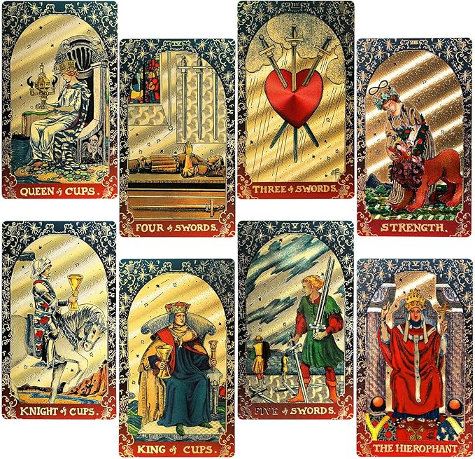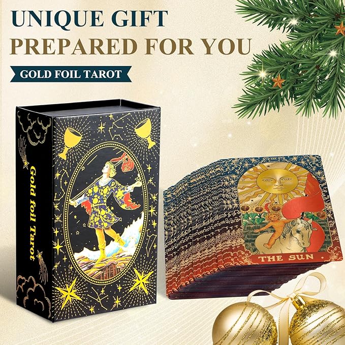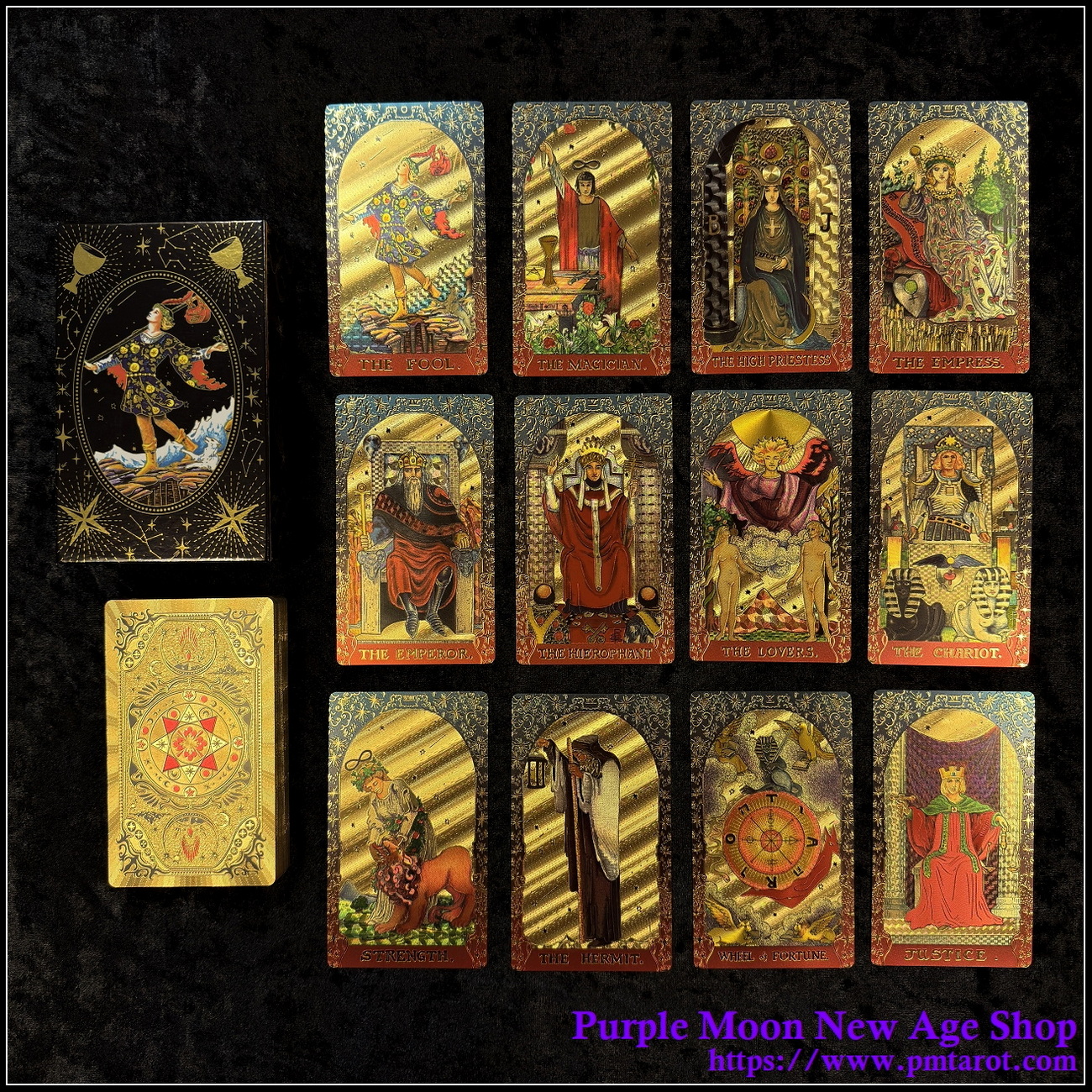 本產品需要付全數訂金訂貨,一般需時約 3-4 星期到貨。這副塔羅牌共包含 78 張卡牌,其中包括 22 張大秘儀與 56 張小秘儀。整副卡牌以高級質感為設計核心,牌面採用黑色霧面處理,觸感柔滑細緻,帶來非同凡響的手感體驗。每張牌都擁有獨特的圖像與象徵意涵,細節豐富且清晰,讓閱讀過程更具層次感與藝術性。卡牌材質選用高級 PVC,比一般 PVC 卡更厚實,具備更佳的抗折與抗皺效果,同時防水耐用,確保長時間使用的品質。表面略帶細膩質感,令洗牌動作順手自然;加上金箔設計,更增添奢華與收藏價值。作為禮物,這副塔羅牌附帶精美收藏盒與指南書,是送給遊戲愛好者或塔羅迷的完美選擇,適合於生日、新年、週年紀念、聖誕節、光明節、感恩節等多種場合。隨盒附贈中文指南說明,如需英文說明書,可於購買後聯繫索取。
