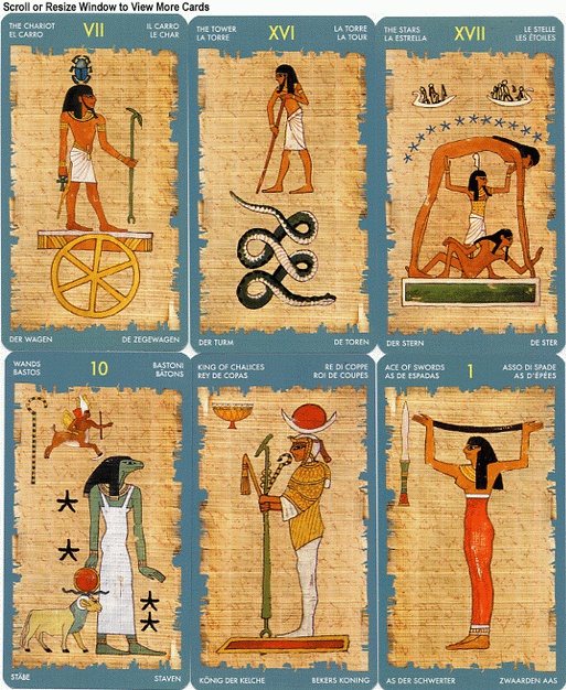 The Tarot reproduces the Egyptian gods and astral spirits of the Denderah Zodiac. To these figures the Egyptians attributed the power to condition human destiny, combining the magic of the stars with the symbolism of the Tarot.