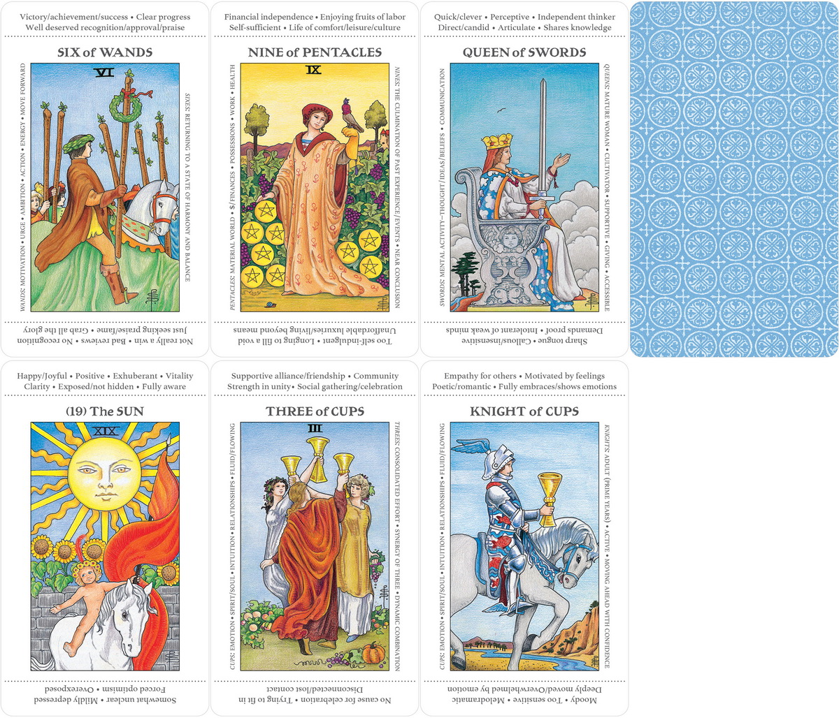 Apprentice Tarot, based on the popular Universal Waite® deck, offers an engaging and enjoyable introduction to tarot. Beginners often start learning tarot by memorizing keywords. However, relying on memorization can limit readers’ understanding of a card, and hinders connection with the imagery. With the Apprentice Tarot Deck, keywords are printed right on the cards, making it easier for the apprentice to focus on the meaning in the visual clues. Includes a 36-page booklet with detailed instructions.