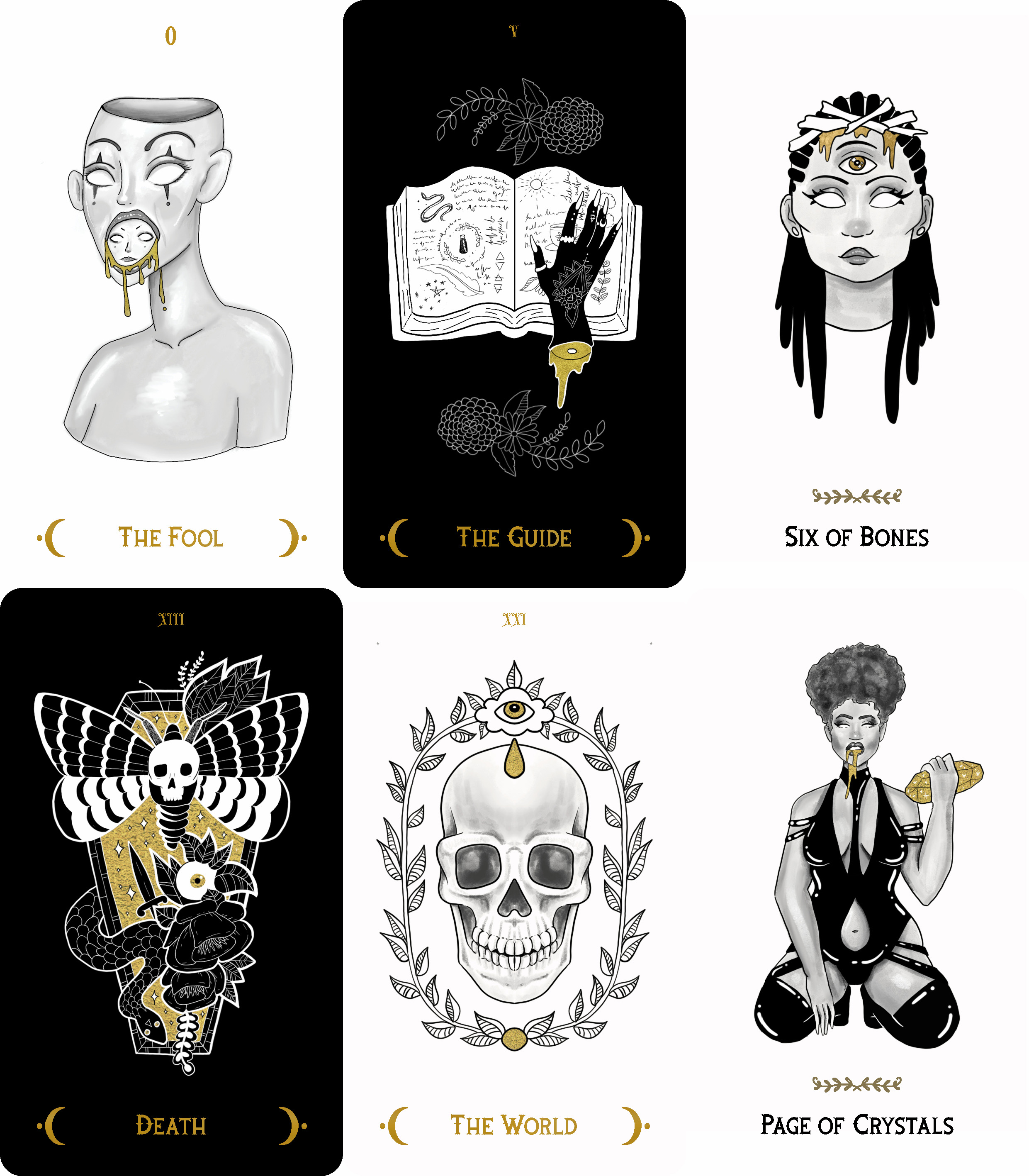 *Traditional tarot structure, with eerie cards that implore you to embrace all the spooky things that lurk in the dark. This deck will push you down the rabbit whole of your own psyche and force you to come face-to-face with your darkest thoughts.
