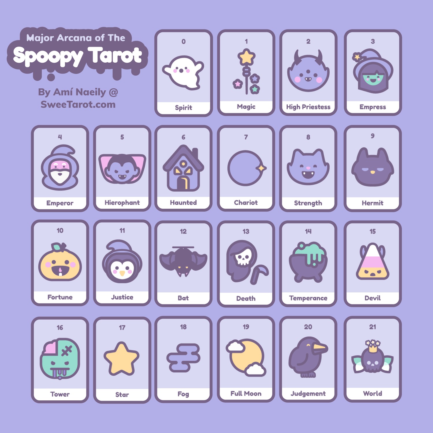 This item is required advance payment to order and estimate arrived in 3-4 weeks.Spoopy Tarot is a kawaii treat for all the spooky season tricksters, featuring the classic tarot deck reimagined with cute li'l ghosts, nasty witches, and other fun stuff that goes bump in the night. Instead of the fool's journey, Spoopy Tarot follows a spirit floating through a haunted house, encountering 78 extremely adorable versions of traditional tarot archetypes in the major and minor arcana.