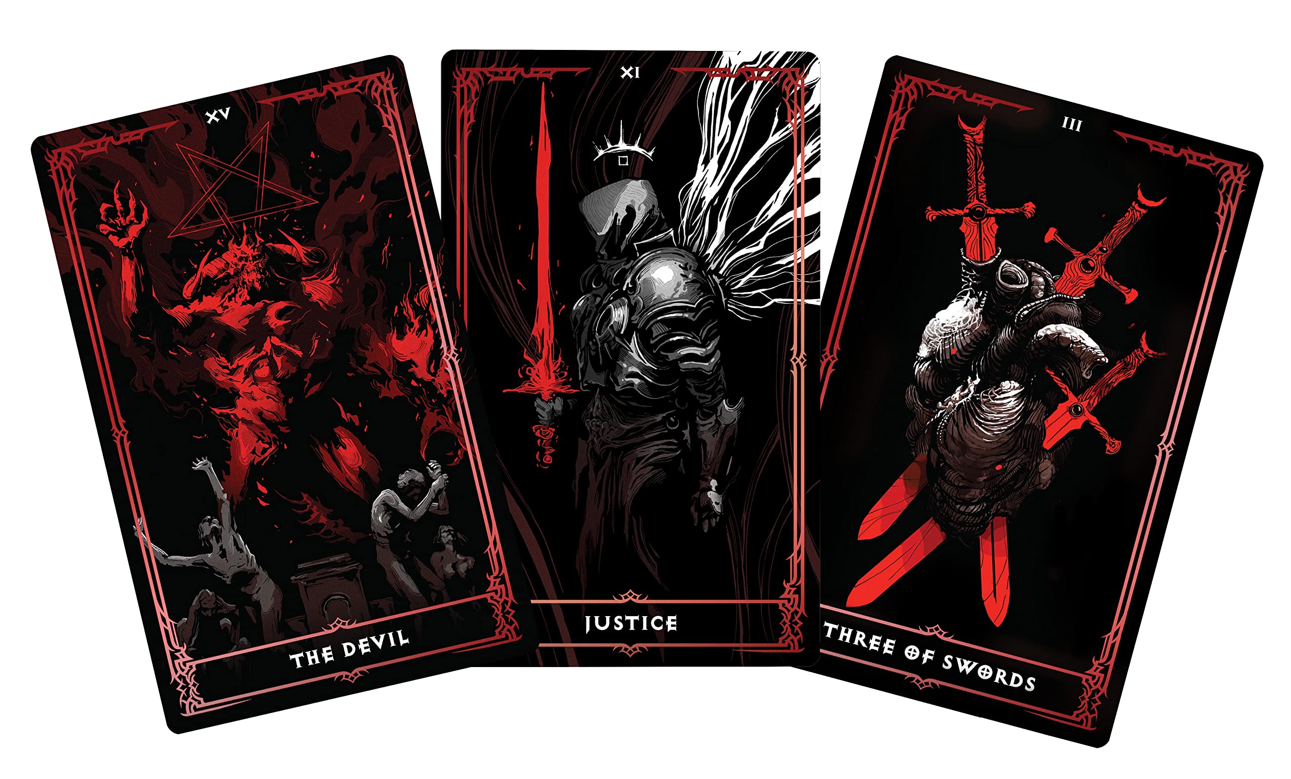 Rekindle the traditions of those who threw bones, read tea leaves, and invoked the supernatural to light their path with this deluxe boxed set featuring 78 hand-illustrated cards with foil and a 96-page illustrated guidebook. In collaboration with the Diablo game team and skilled horror artists, these all-new hand-illustrated works of art for the major and minor arcana channel the beauty and terror of Sanctuary, offering a visually stunning experience that holds the key to understanding—and embracing—your own inner demons.