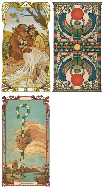 Another masterpiece by Giulia F. Massaglia, the bestselling author of Tarot Mucha and Golden Art Nouveau Tarot. This deck combines the classic archetypes of A.E. Waite and P.C. Smith with the wonderful aesthetics and legends of Ancient Egypt. The result is a collection of 78 beautifully illustrated cards, enriched by a series of Liberty-themed frames.