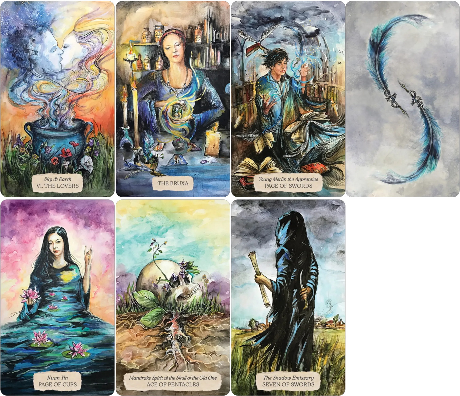 Welcome to the world of Bonestone and Earthflesh, where myth and mysticism intertwine. This 79-card tarot deck is a journey through sacred landscapes and enduring narratives, where the hero, the villain, the lover, and the seer all leave their mark. Each card carries the voice of land spirits, protective deities, and the wisdom of those who came before.
